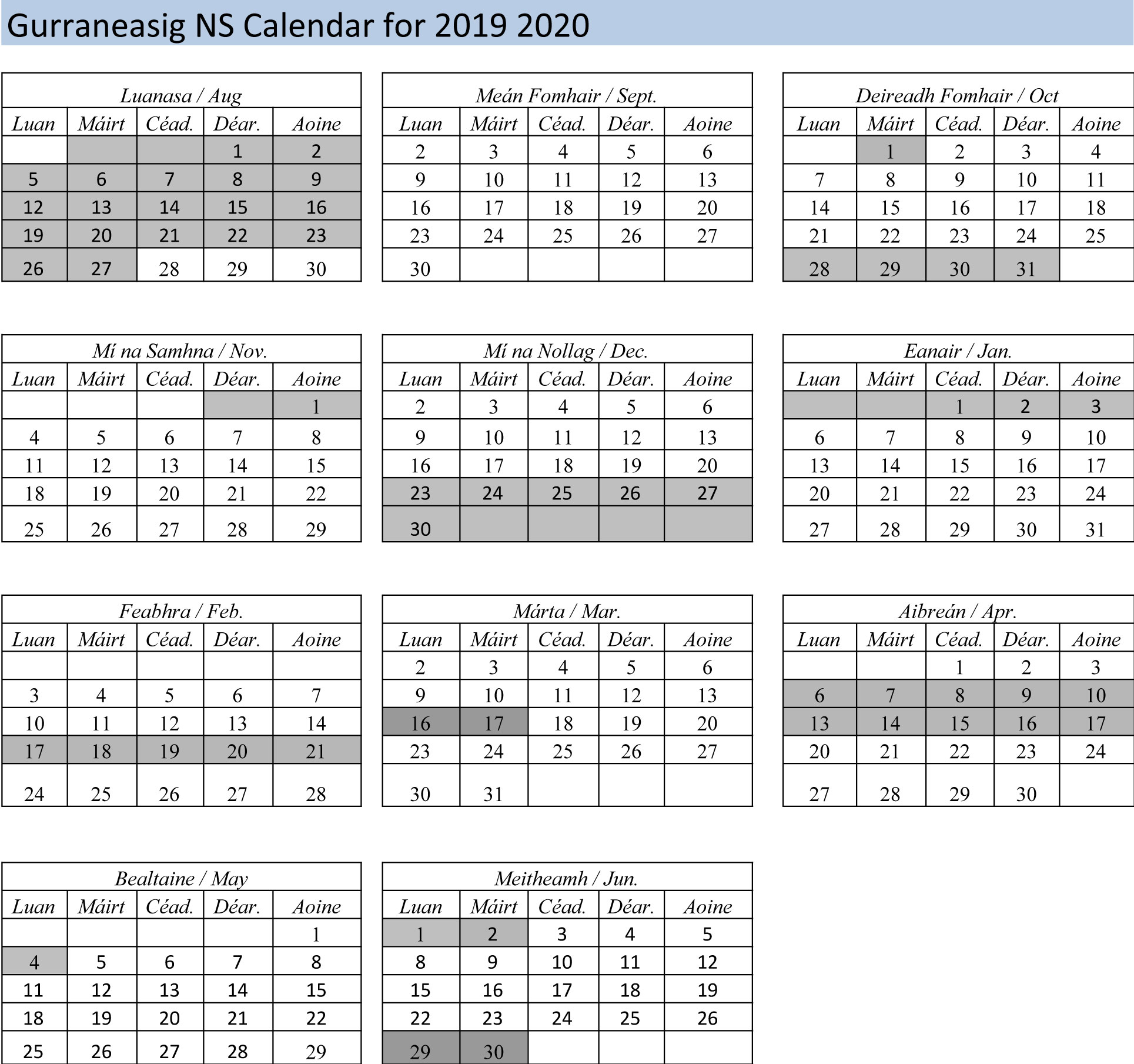 Finally, I want to take this opportunity to wish you and your child all the best for the coming year and hope that they will have a fruitful and happy year with us in Gurraneasig NS. “Mol an óige agus tiocfaidh sí”.